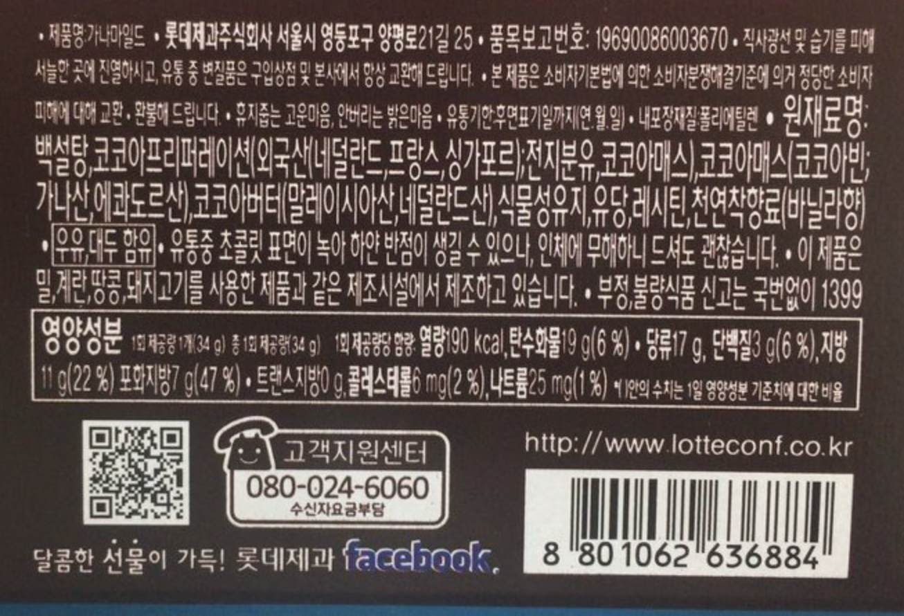 가나초콜릿 작은사이즈보다 적게 들어간다는 것..