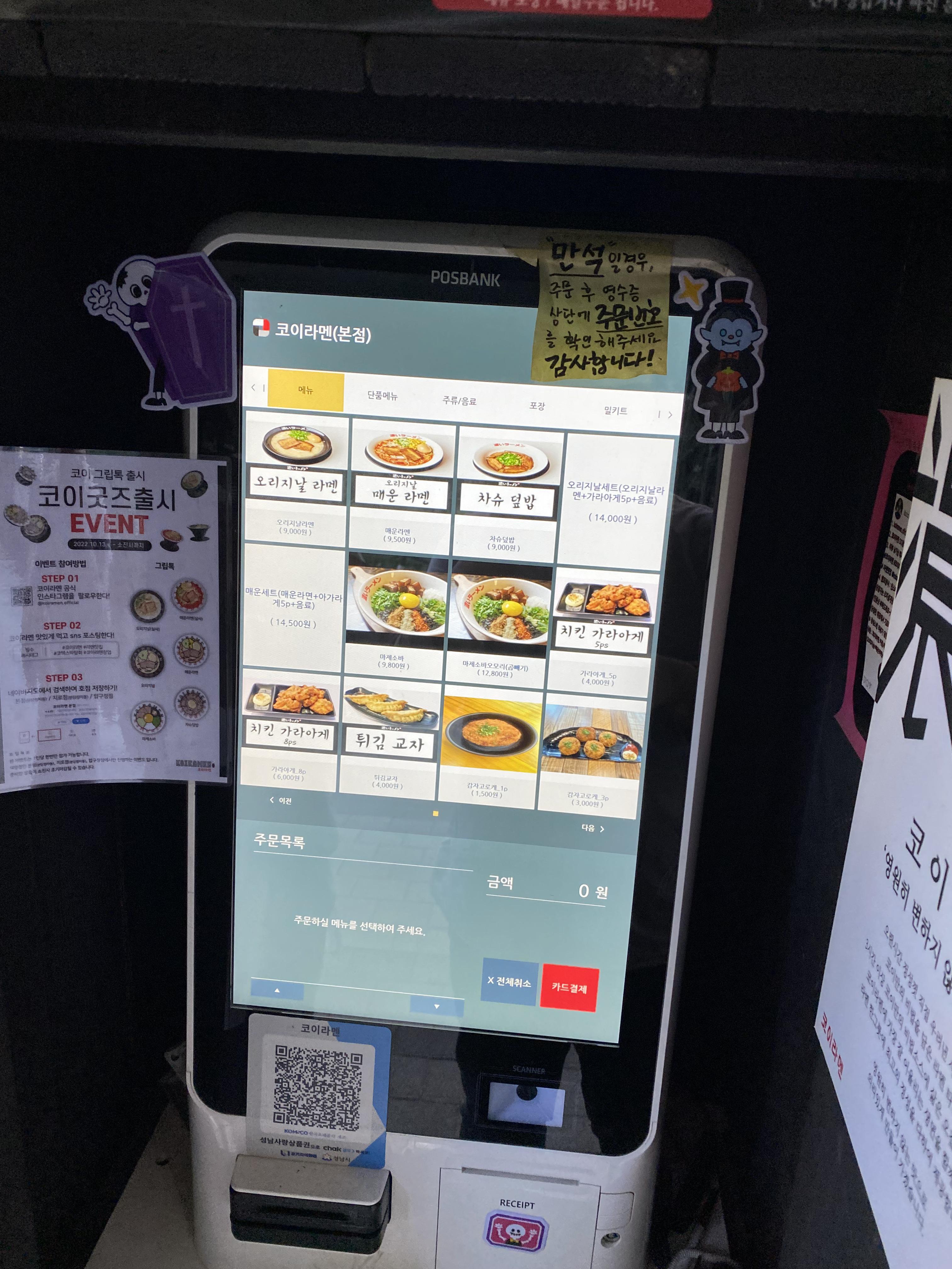 입구에서 키오스크로 주문해 들어갈 수 있습니다.