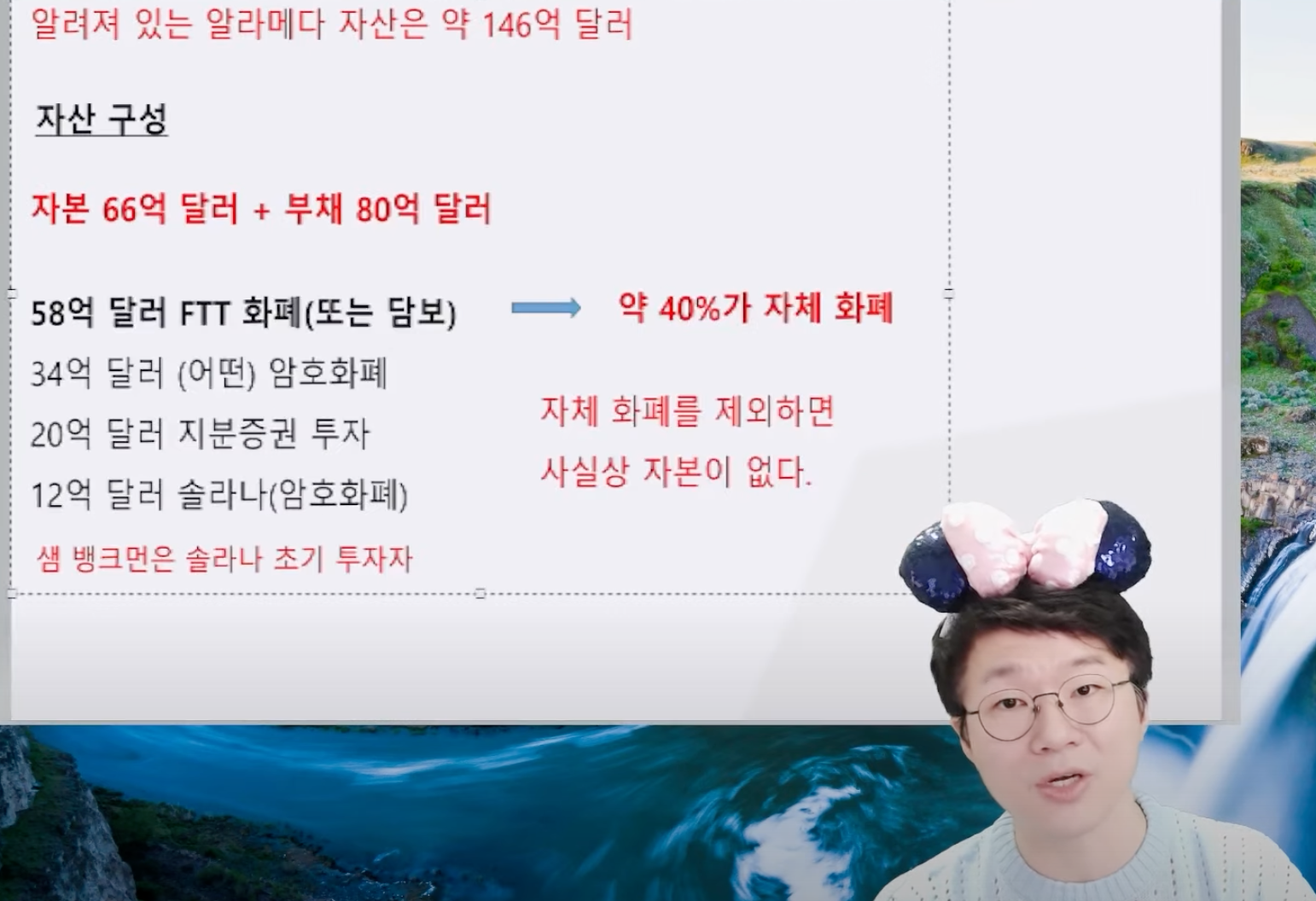 그리고 FTX의 창립자, 세계 32위 부자"샘 뱅크먼"의 회사 Alameda의 재무 자산 내용의 대부분이