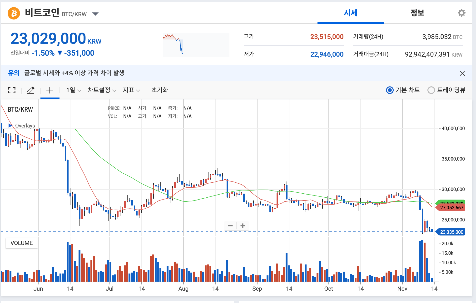 우선 11월 초 가상화폐 대폭락이 있었습니다.