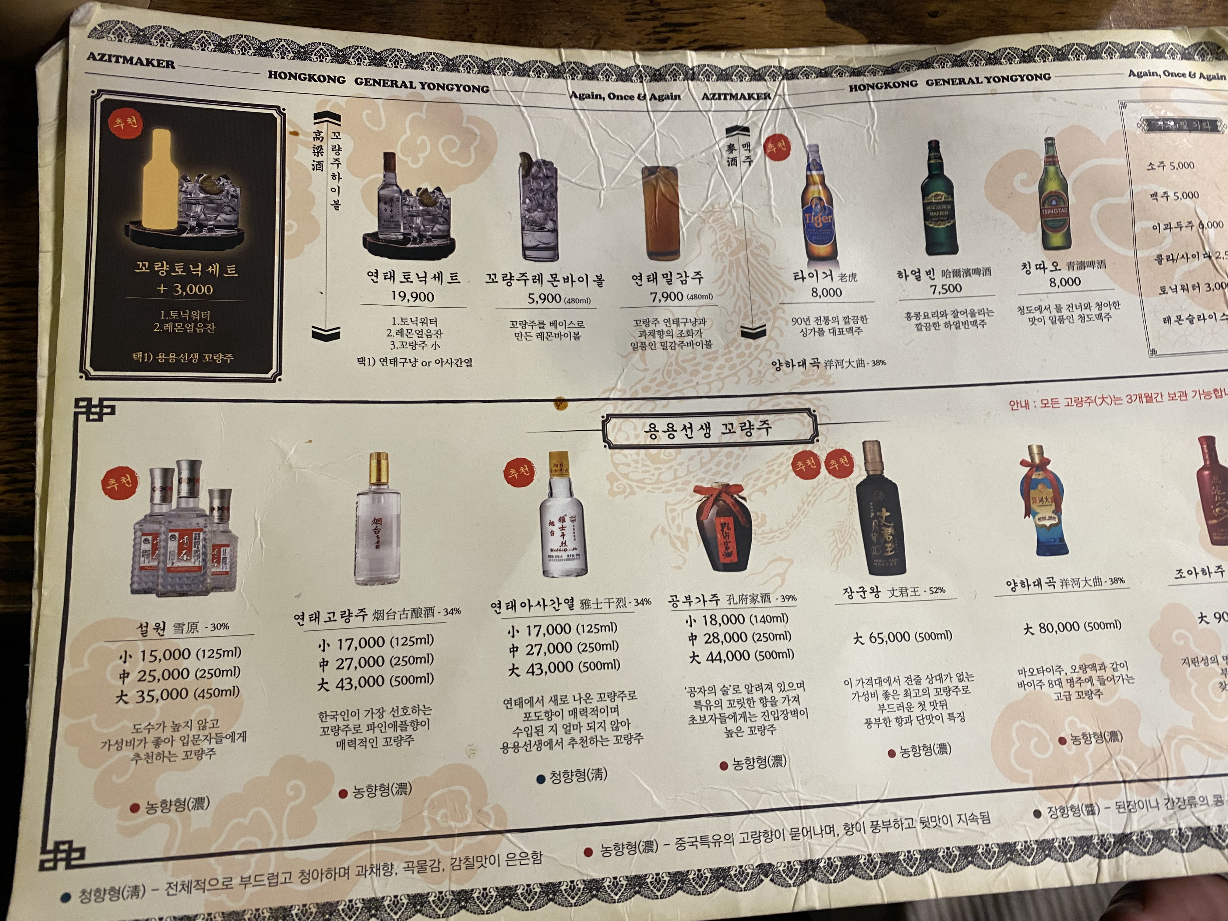 용용선생에서만 판매하는 시그니쳐 주류도 보입니다.