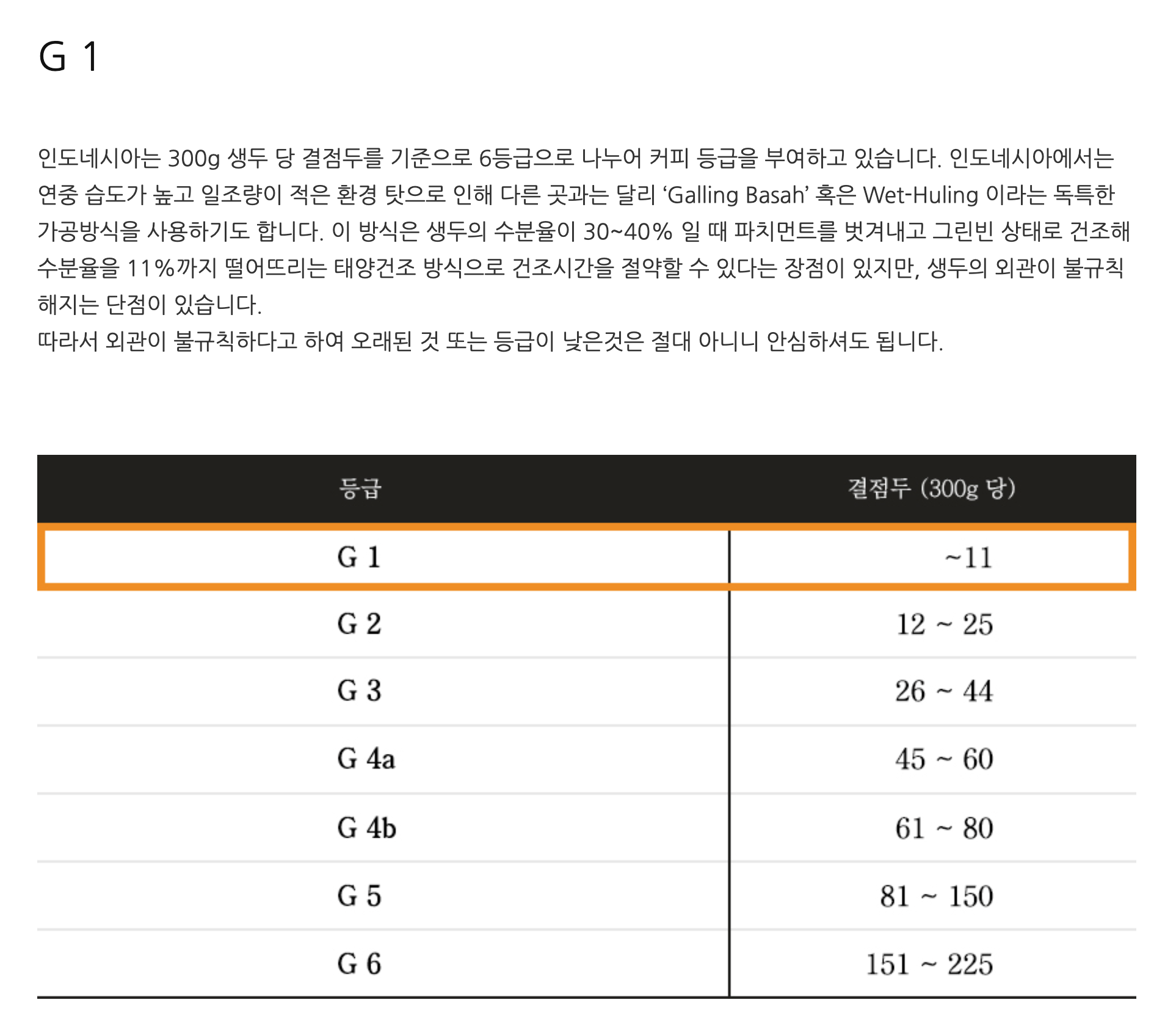 인도네시아 산 원두의 이름 끝에 붙는 G는 당연 등급표시 이며