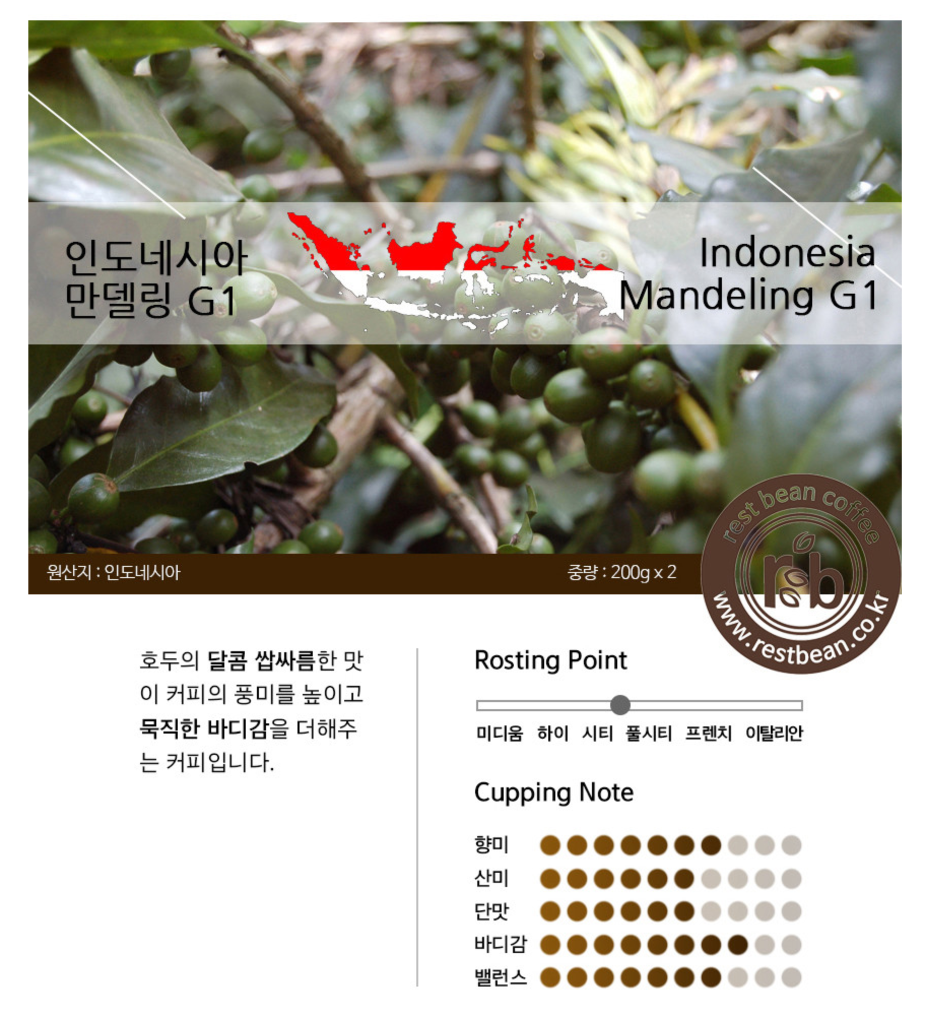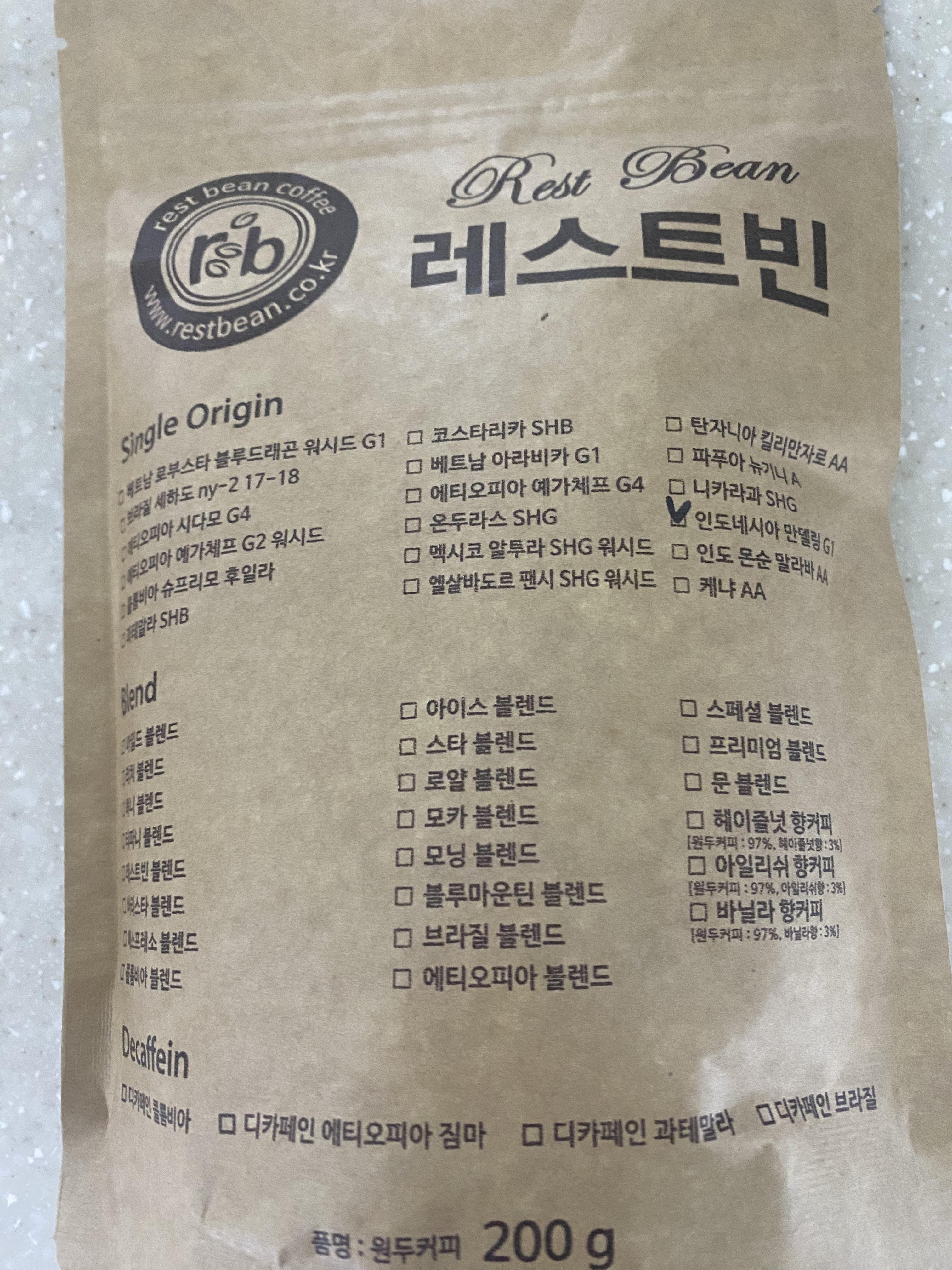 이번에 구매하게 된 레스트빈 사의 인도네시아 만델링 원두입니다.