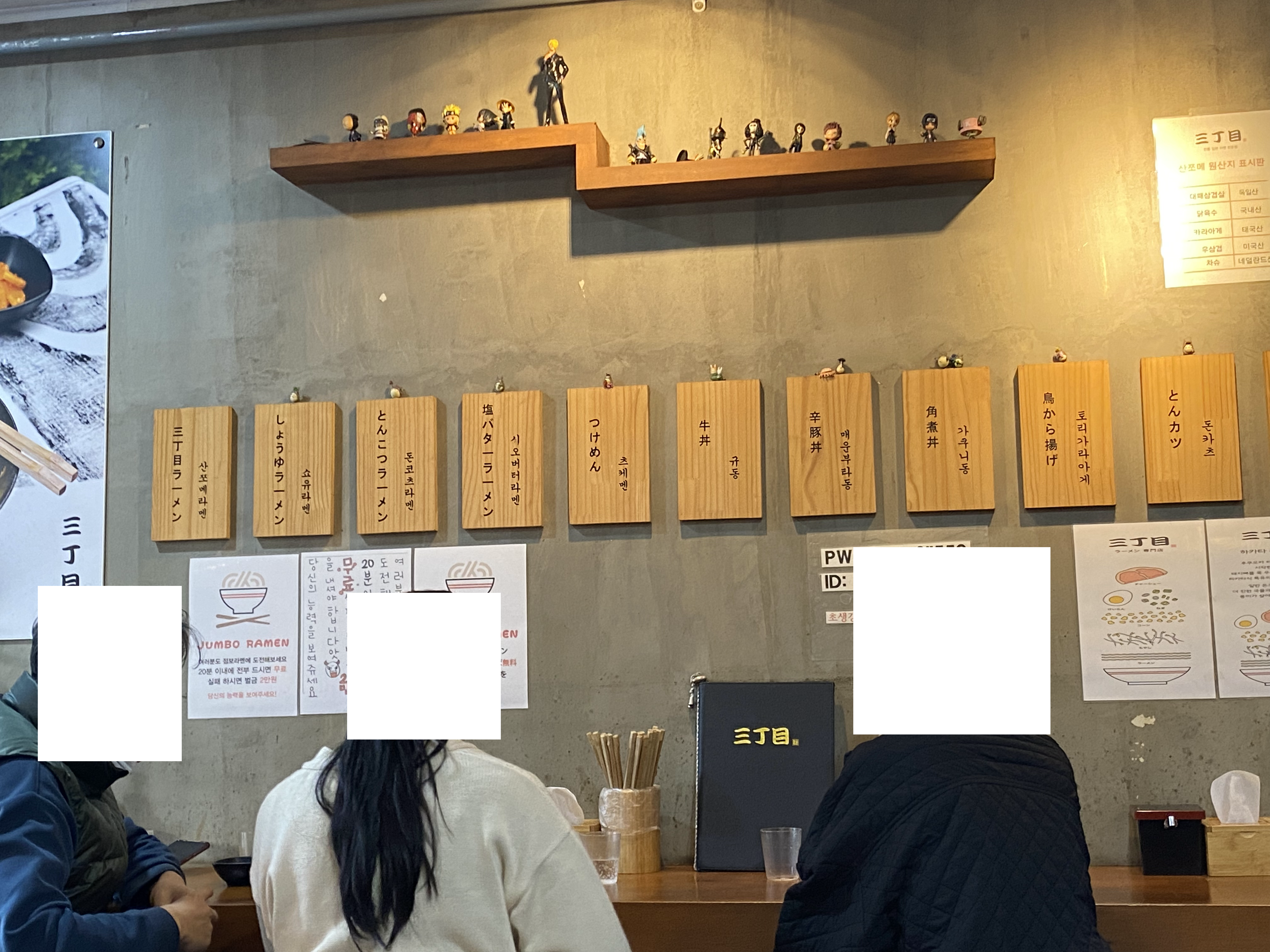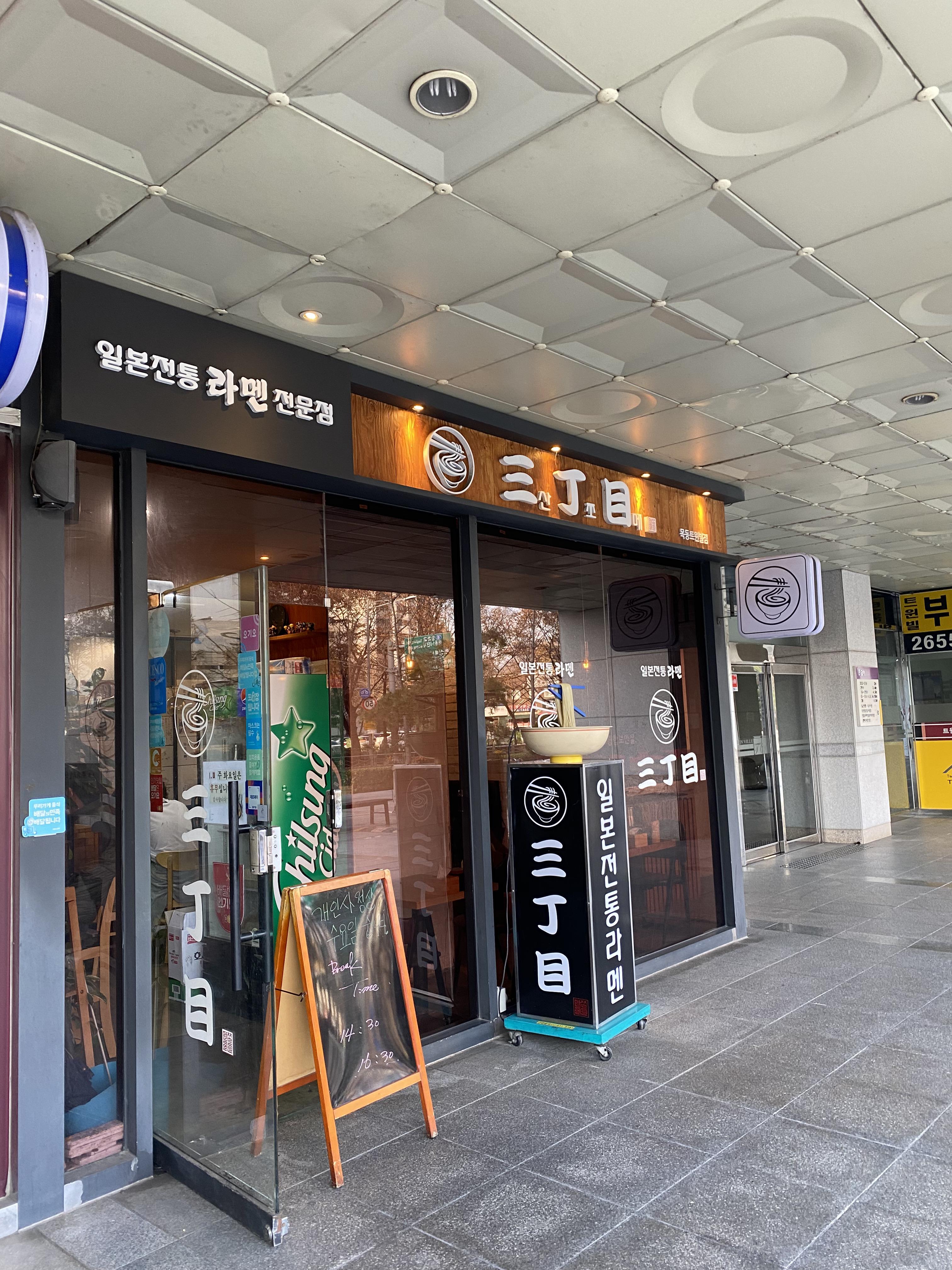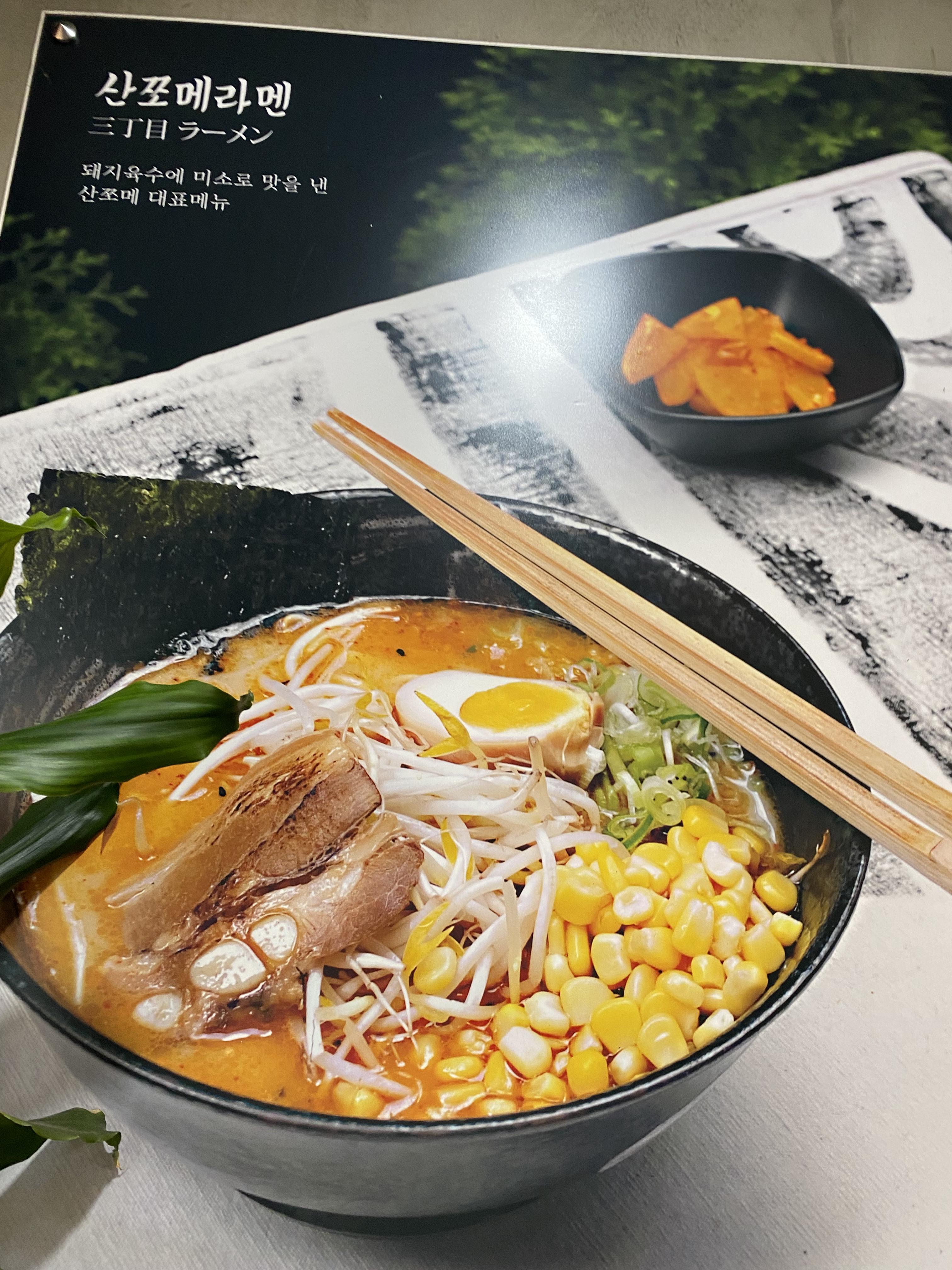 시그니처 메뉴인 산쪼메 라멘 입니다. (간판 일본어가 한국식 발음으로 산 쪼 메)