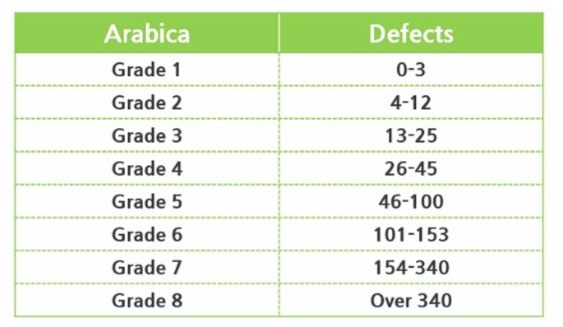 결점두의 비율에 따라 G2, G3, G4 순으로 내려가는 것이 등급의 분류 입니다.