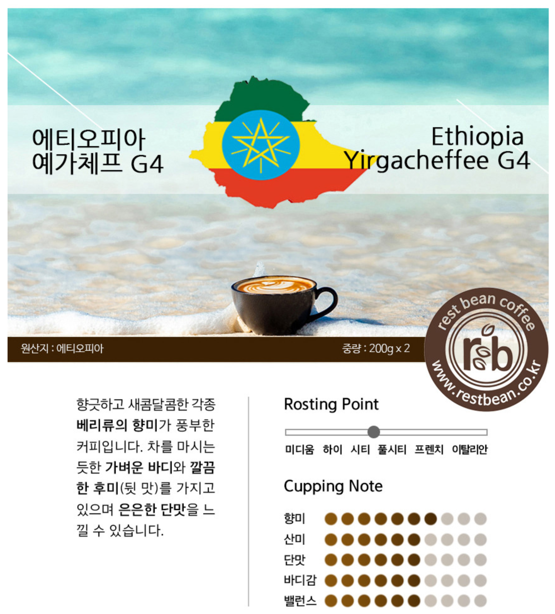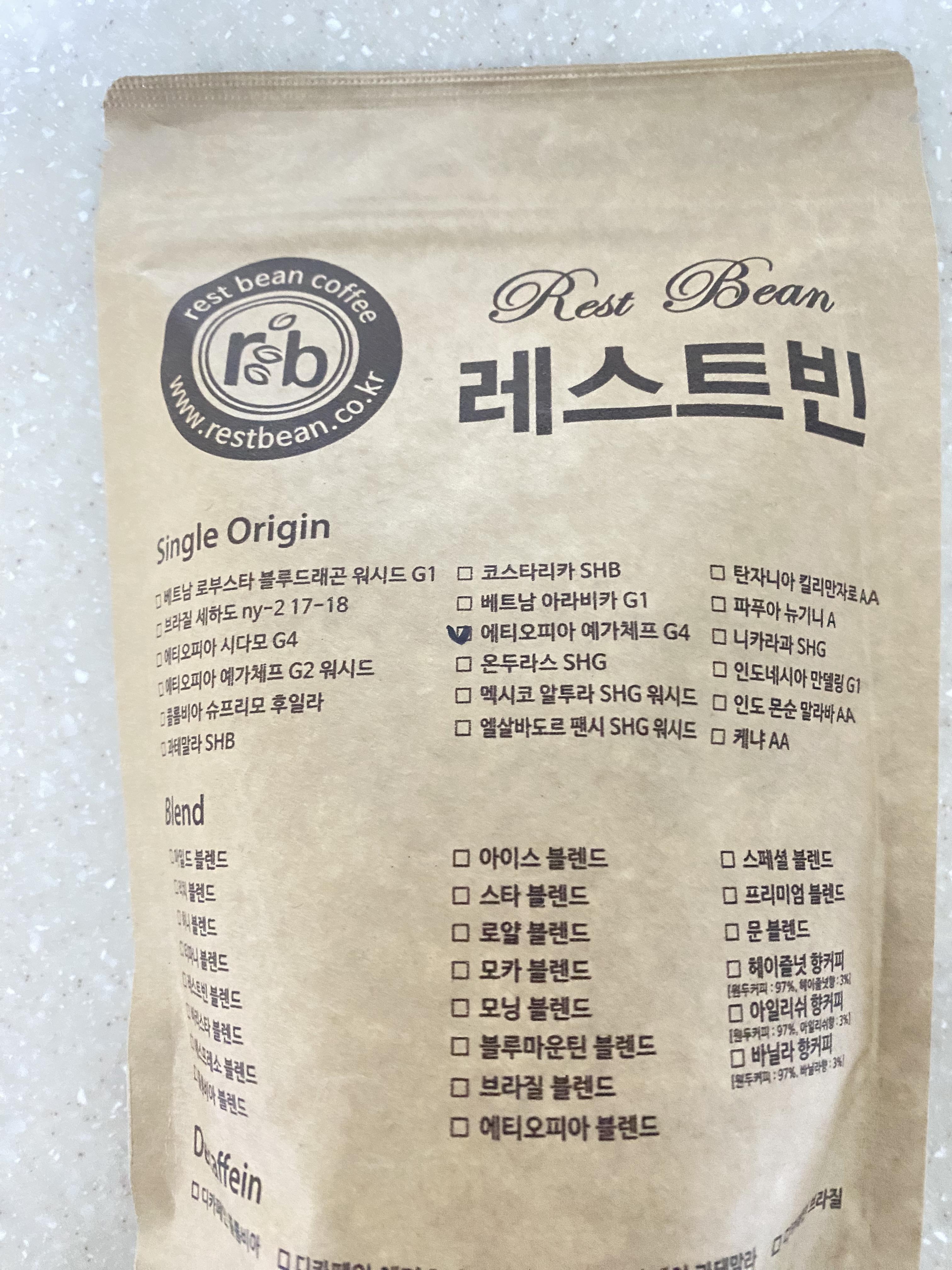 레스트빈 사의 예가체프 G4 원두 입니다.