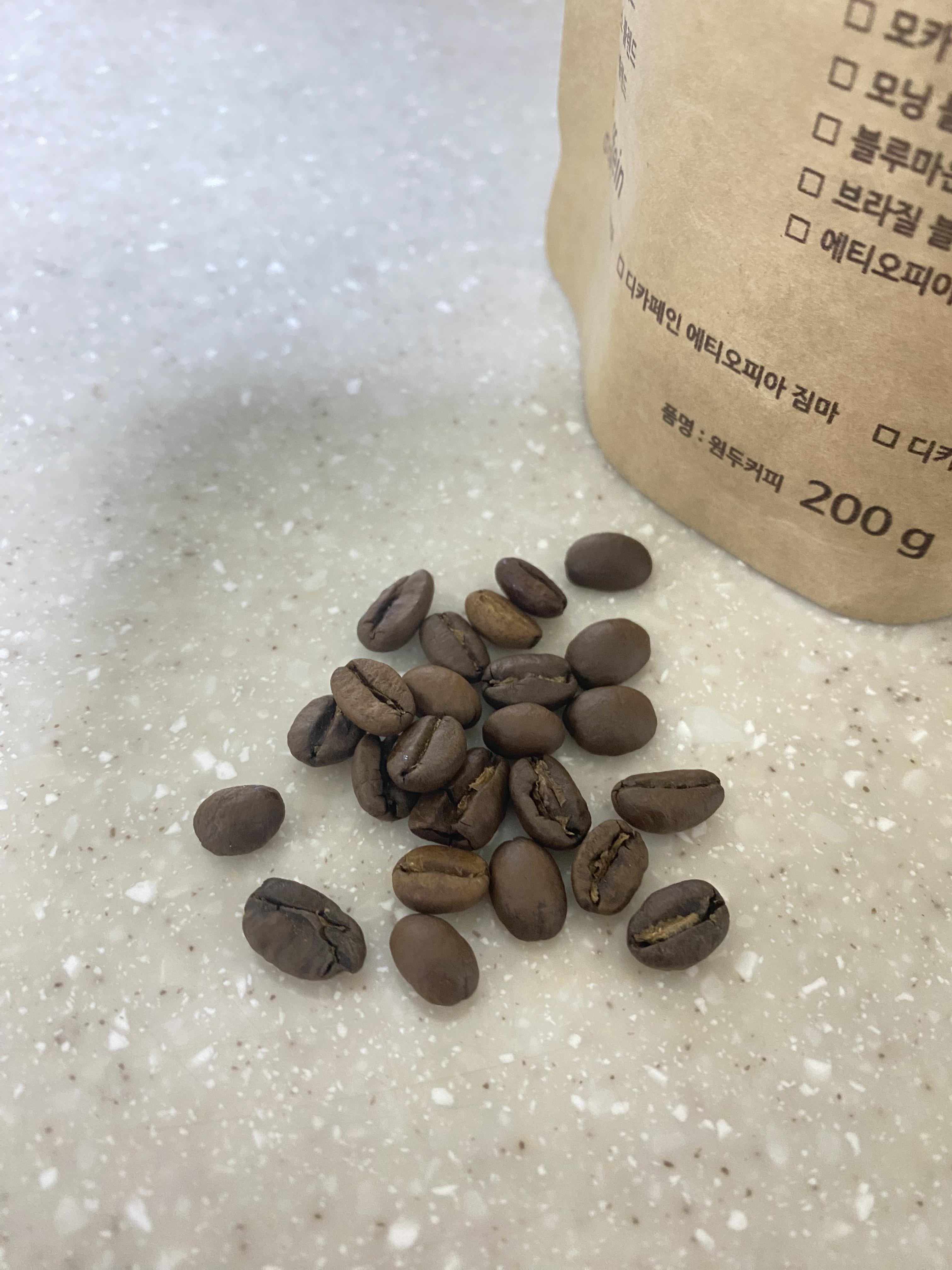 보시는 것 처럼 원두의 크기가 제각각이며 객관적으로 봤을 때 다방면으로 고르지 못한 모습을 확인 할 수 있습니다.